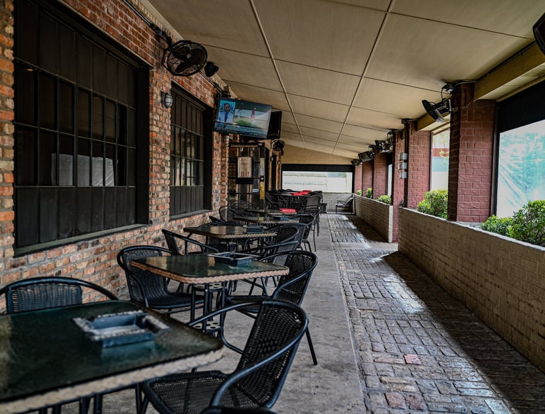 Take pleasure in our enclosed patio, featuring wind shields, fans, and heaters ideal for use throughout the year.